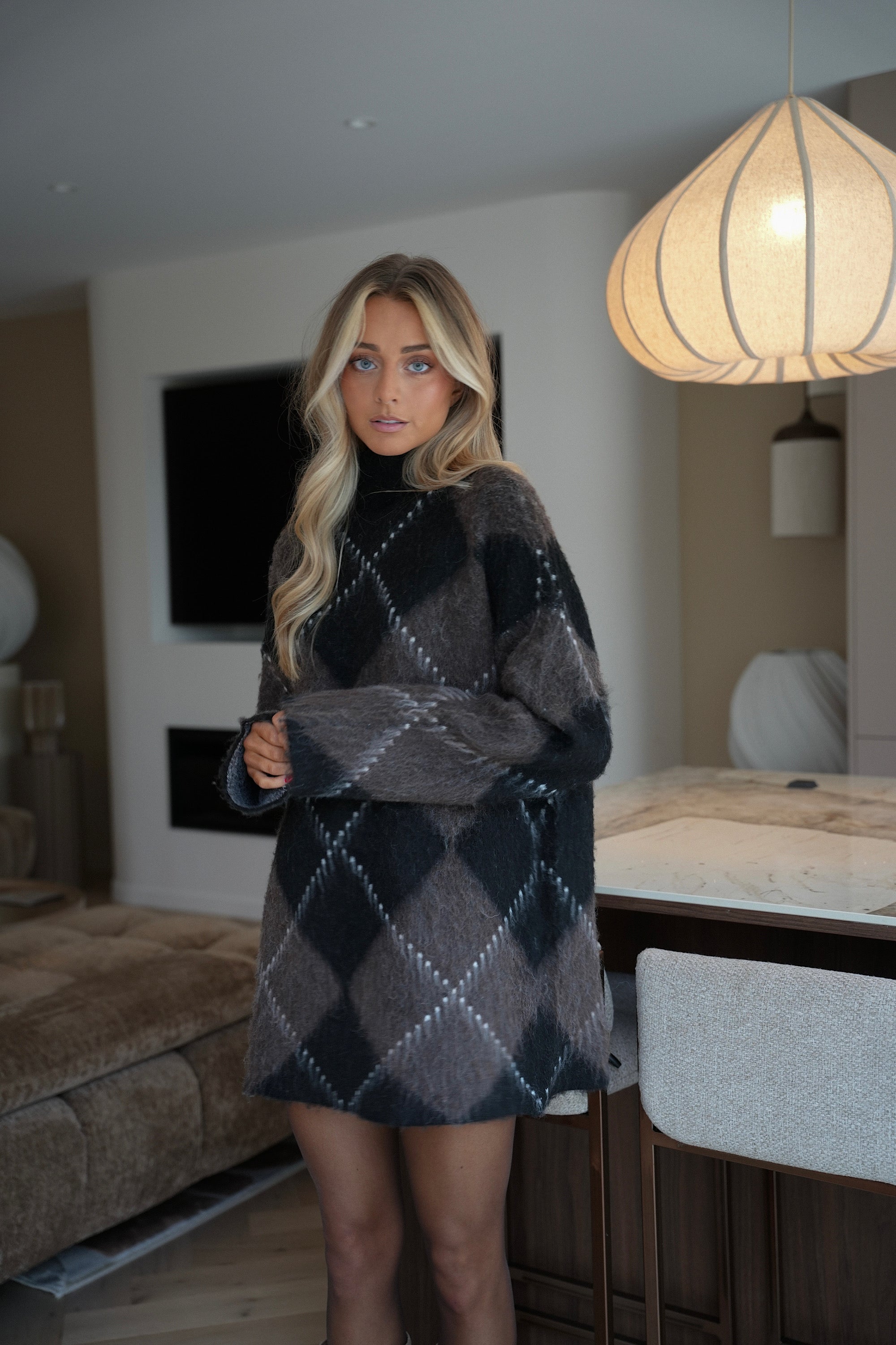 Ortense taupe - Pull losanges